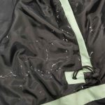 The velcro strap by the chest had loosened and is now stitched and repaired. Also, the padding on the inside of the jacket is a bit loose. The garment has a small black mark on the front of the jacket. See the last pictures for a more detailed view of the defects.
